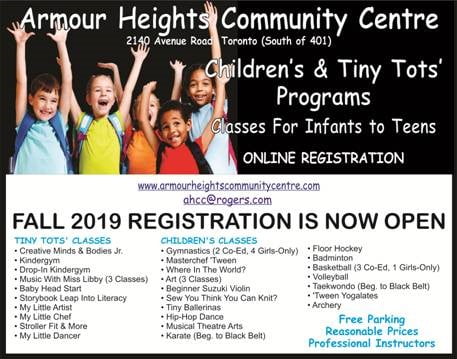 Armour Heights Community Centre – Fall 2019 Registration is Now Open